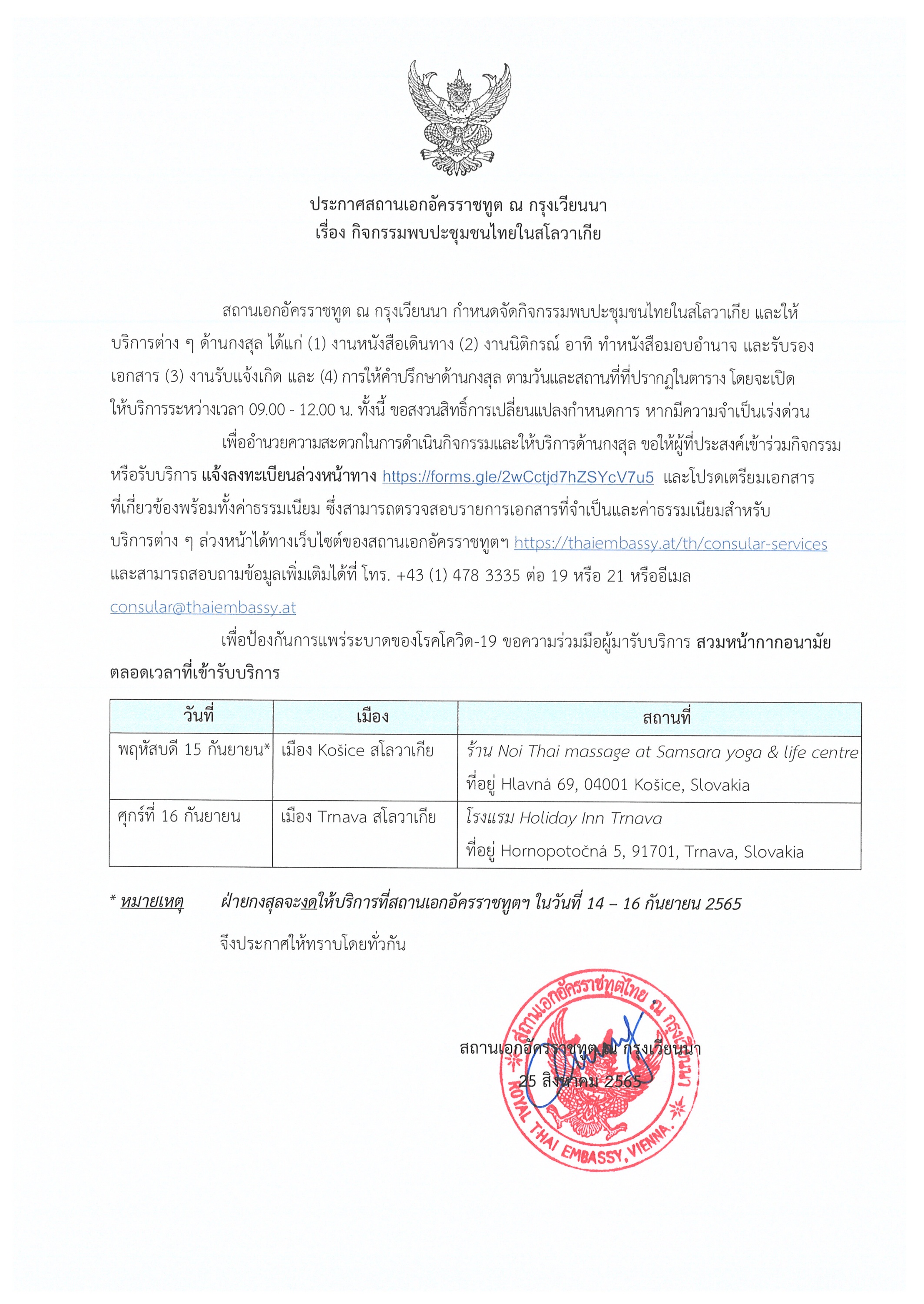 1. ประกาศ กำหนดการกิจกรรมพบชุมชนไทยในสโลวาเกีย