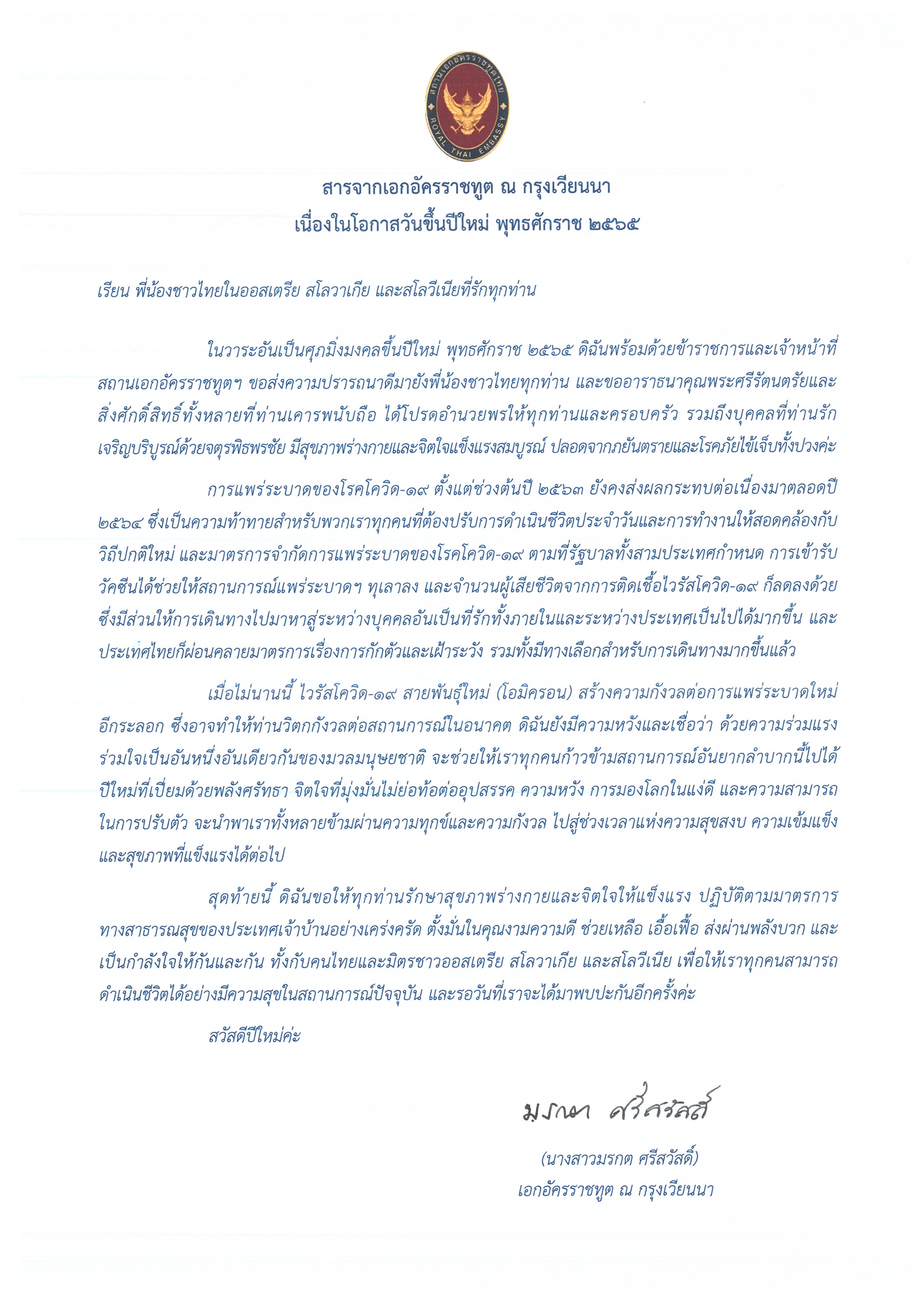 สารปีใหม่ 2565 จาก ออท ณ กรุงเวียนนา